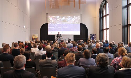 Über 160 Zuschauer waren dabei, als die geistigen Urheber, Bauherren und politisch verantwortlichen Personen der Gewinnerprojekte gewürdigt werden. Auch die Schirmherrin des Preises Staatsministerin Kerstin Schreyer richtete sich mit einer Videobotschaft an das Publikum sowie die Gewinner und betonte dabei, dass „gerade im Kulturstaat Bayern die Baukultur eine wichtige Gemeinschaftsaufgabe“ sei. „Beim Bauen dürfe Quantität nicht vor Qualität gehen, das gebaute Umfeld und damit die Baukultur habe schließlich große Auswirkungen auf die Menschen“, so die Ministerin weiter. Wie Baukultur auch weiterhin gestärkt werden kann, stellte Stadtbaurätin Prof. Dr. (Univ. Florenz) Elisabeth Merk in ihrem Impulsvortrag zur geplanten Internationalen Bauausstellung in der Metropolregion vor.